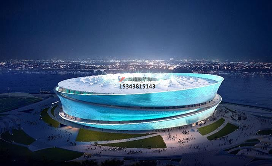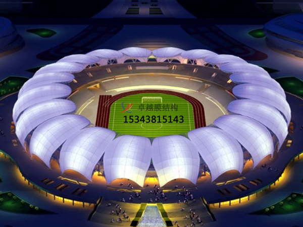 膜結(jié)構(gòu)體育場(chǎng)館的優(yōu)勢(shì):膜結(jié)構(gòu)體育場(chǎng)館優(yōu)勢(shì)很多,其中就包含建筑造型優(yōu)美、空間利用率高、可透光性與采光、節(jié)能環(huán)保、施工周期短、經(jīng)濟(jì)性等。膜結(jié)構(gòu)能塑造出自由、輕巧、柔美的造型,如曲面、穹頂?shù)?,為體育場(chǎng)館帶來(lái)獨(dú)特的視覺效果,使其成為城市的標(biāo)志性建筑。還可以創(chuàng)造巨大的無(wú)遮擋可視空間,無(wú)需內(nèi)部支撐柱,能更好地滿足體育賽事和觀眾觀賽的需求,提高空間利用率。膜材具有良好的透光性,可使場(chǎng)館內(nèi)部獲得充足的自然采光,減少白天對(duì)人工照明的依賴,降低能源消耗,同時(shí)營(yíng)造出舒適的室內(nèi)光環(huán)境。膜結(jié)構(gòu)具有優(yōu)異的保溫隔熱性能,能有效降低場(chǎng)館的能耗,此外,膜材可回收利用,符合綠色環(huán)保理念,降低對(duì)環(huán)境的影響。相比傳統(tǒng)的混凝土結(jié)構(gòu)或鋼結(jié)構(gòu)體育場(chǎng)館,膜結(jié)構(gòu)體育場(chǎng)館的施工速度更快,安裝便捷,可在較短時(shí)間內(nèi)完成建設(shè)。由于膜結(jié)構(gòu)自重輕,基礎(chǔ)和支撐結(jié)構(gòu)相對(duì)簡(jiǎn)單,可降低建筑成本,同時(shí),其維護(hù)成本也較低。