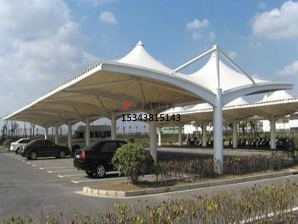 膜結(jié)構(gòu)車棚膜結(jié)構(gòu)所用的膜材料為具有、阻燃、耐久、自潔等特性的復(fù)合材料,一般由基布和涂層二部分組成。基布主要采用聚脂纖維或玻璃纖維絲編織而成,有平織和絞等多種編織方法,不同的膜結(jié)構(gòu)車蓬編織方法影響著膜材料的經(jīng)緯向力學(xué)性能指標(biāo),膜的抗拉強(qiáng)度和抗撕裂強(qiáng)度等;涂層材料主要有聚四氟乙烯和聚氯乙烯,在一定程度上提高了膜材料各項強(qiáng)度指標(biāo),為提高膜材料的耐久、自潔等特性,表面往往有一層氟涂層或硅涂層,膜材料的耐火、耐久及防水、自潔等性能,決定著膜材料的物理特性。