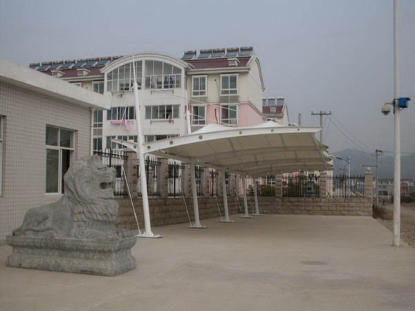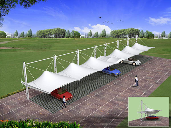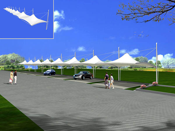膜結構車棚實用和觀賞性: 使用膜結構,那么就不能簡單只是搭一個棚子,是選擇張拉式的還是拱形還是冒頂,需要提前跟設計師溝通!