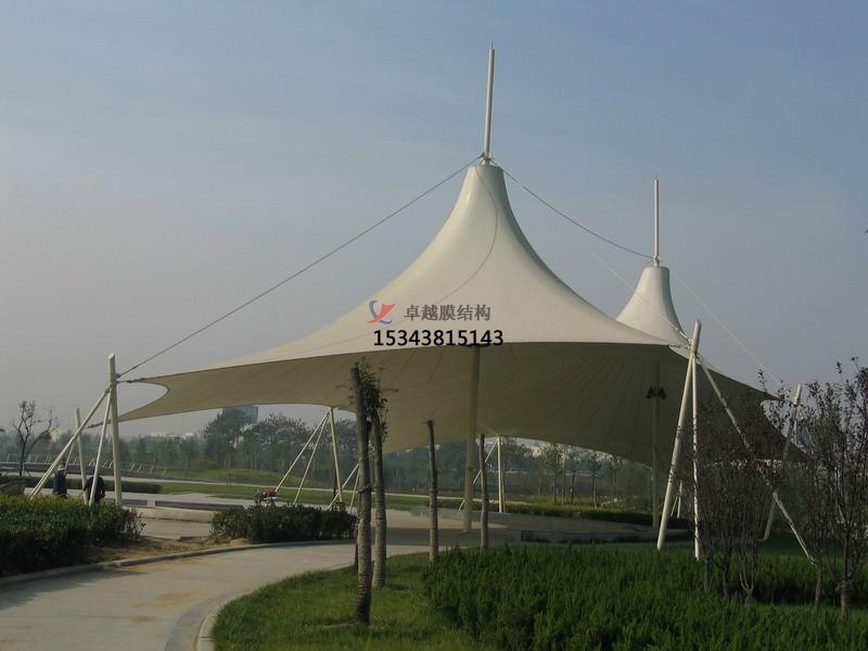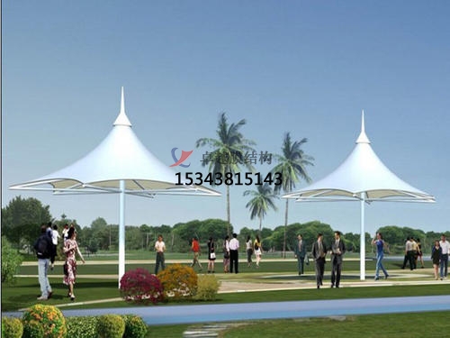 2、預(yù)應(yīng)力施加間隔每次施加預(yù)應(yīng)力間隔24h。第2,3次施加了預(yù)應(yīng)力之時,各處工作點位的人員時刻觀察膜面的張緊度,遇有應(yīng)力集中的狀況時,應(yīng)當(dāng)及時進行調(diào)整,規(guī)避膜面破壞。張拉完景觀膜結(jié)構(gòu)遮陽棚的膜單元后,再安裝焊接蓋口膜。