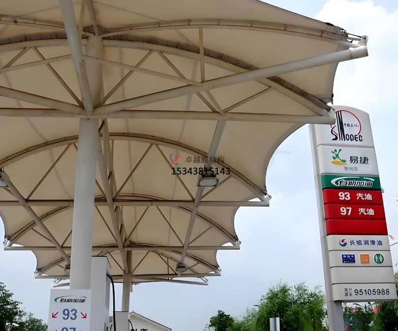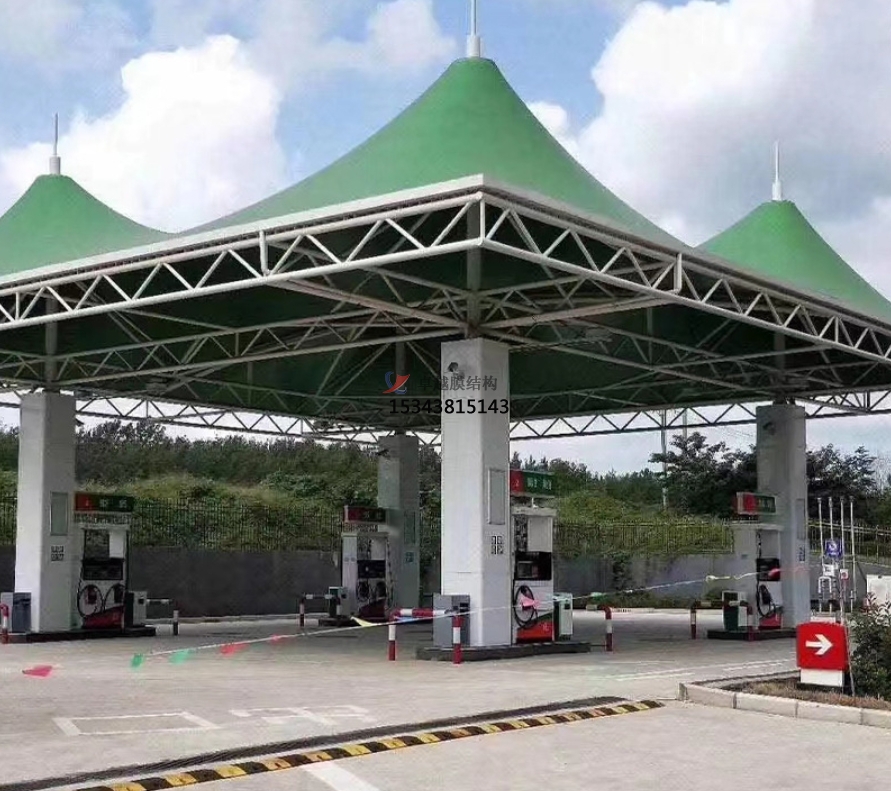 加油站膜結(jié)構(gòu)頂棚在實(shí)際應(yīng)用中已經(jīng)取得了顯著的效果。許多新建的加油站都采用了這種頂棚形式,不僅提升了加油站的整體形象,還為顧客提供了更加舒適的加油環(huán)境。同時(shí),膜結(jié)構(gòu)頂棚的輕質(zhì)高強(qiáng)特點(diǎn)也使得加油站的建設(shè)成本得到了一定程度的降低。