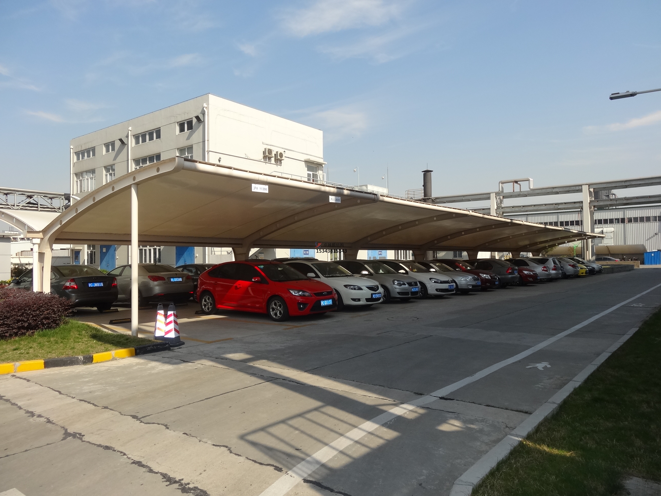 3,雨棚內(nèi)部選用Φ38鍍鋅圓管與雨棚結構焊接,加蓋膜結構污水池增強棚頂部強度,可讓棚內(nèi)感覺寬闊通亮,??寇囕v輕松方便,完全吻合雨棚制造要求標準;