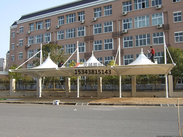 目前國內(nèi)大部分膜結(jié)構(gòu)工程使用的都是聚酯纖維膜材料,即PVC聚酯纖維膜材,表面涂以PVDF聚氟化合物,增強(qiáng)了原有PVC膜材耐污染、抗老化的性能,膜材使用壽命增加到10-15年。聚酯纖維是膜建筑中應(yīng)用更廣泛的纖維,并認(rèn)為是建筑膜材標(biāo)準(zhǔn)產(chǎn)品。聚酯纖維拉伸強(qiáng)度高,彈性好。在拉伸屈服前,纖維具有較大的伸長變形能力,使得在安裝時(shí)可進(jìn)行一定的調(diào)整。但日照將使聚酯纖維老化,彈性與強(qiáng)度等力學(xué)性能降低,所以很多建筑采用PTFE、ETFE等永久性膜材。