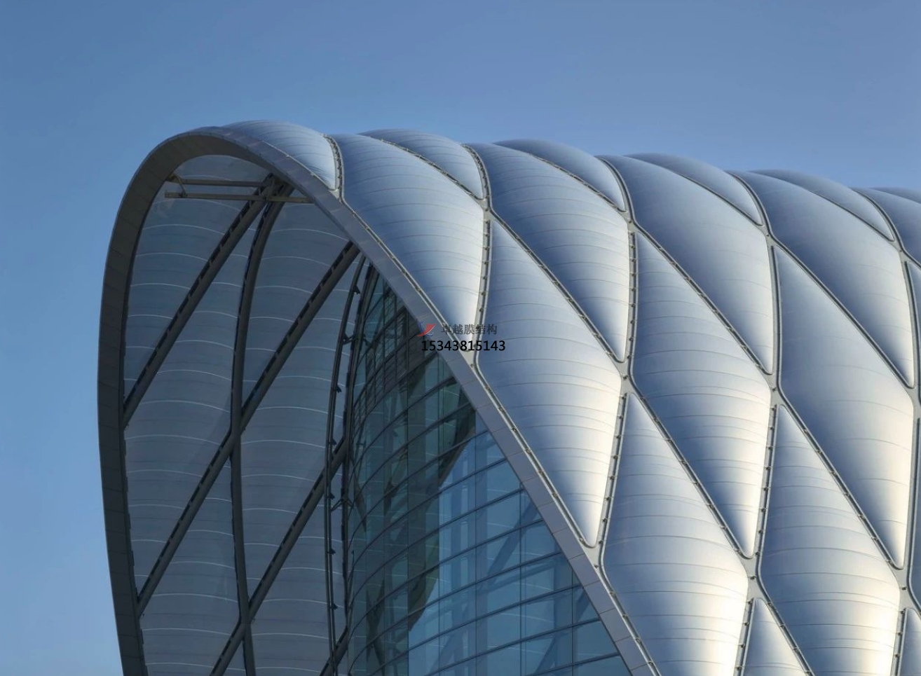 一般而言,單層膜的ETFE膜結(jié)構(gòu)造價是1600元/平方米,雙層氣枕膜是2000—2200元/平方米,都包含材料、人工及相關(guān)配套設(shè)備的費用。ETFE膜結(jié)構(gòu)的費用要比PTFE和PVDF高很多,這主要是由于ETFE膜結(jié)構(gòu)材料的特質(zhì)造成的。
