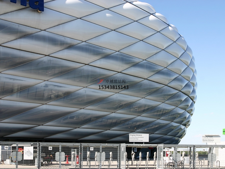 8)生產(chǎn)廠家對(duì)ETFE膜材料的質(zhì)量保證期為10年,實(shí)際的使用壽命可超過(guò)20年。