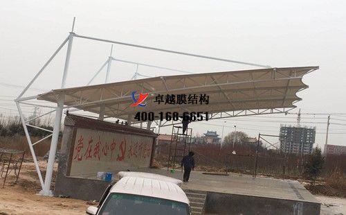 焦作劉村膜結構看臺/主席臺膜結構項目,膜材展開面積為200平方,工程總造價******元,膜材單價***元(保密,具體請咨詢客服,想了解價格的可以參考《膜結構價格》)