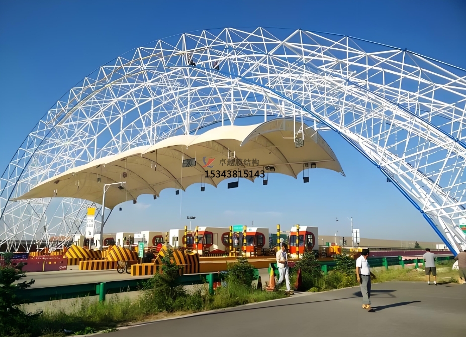隨著科技的飛速發(fā)展和城市化進(jìn)程的加速,交通基礎(chǔ)設(shè)施的建設(shè)也在不斷創(chuàng)新和升級(jí)。收費(fèi)站作為交通網(wǎng)絡(luò)中的重要節(jié)點(diǎn),其設(shè)計(jì)和建造不僅關(guān)乎交通的順暢與安全,更體現(xiàn)了現(xiàn)代建筑技術(shù)與環(huán)保理念的融合。近年來,膜結(jié)構(gòu)技術(shù)在收費(fèi)站建設(shè)中的應(yīng)用日益廣泛,成為現(xiàn)代交通建筑的新趨勢。