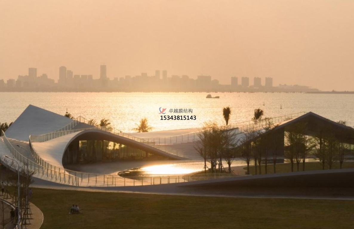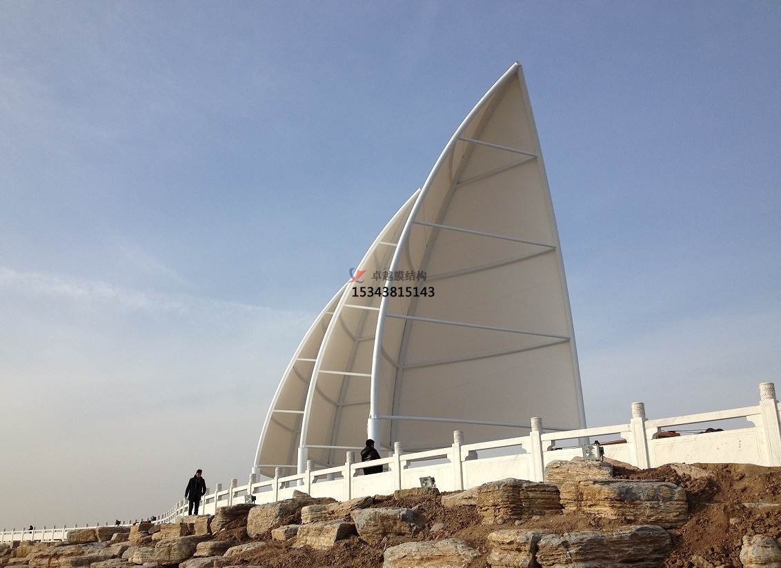 海邊的景觀膜結構最顯著的特點是其與海洋環(huán)境的和諧共生。這些結構往往采用流線型設計,模仿海浪、貝殼等自然元素,與周圍的海濱風光相得益彰。膜材料的選擇也注重透光性和耐候性,既保證了室內光線的充足,又能抵御海邊惡劣的天氣條件,如強風、高鹽度等。