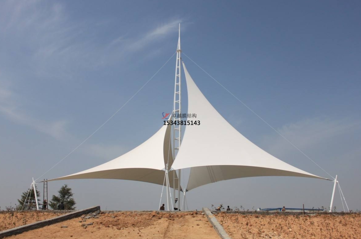 景觀膜結構的應用形式多種多樣。例如,一些度假區(qū)會搭建膜結構遮陽棚,為游客提供舒適的休息空間。這些遮陽棚通常采用大面積的膜材料,覆蓋在鋼結構或木結構上,形成開闊而通透的空間。游客可以在這里享受海風、沐浴陽光,同時避免紫外線的過度照射。
