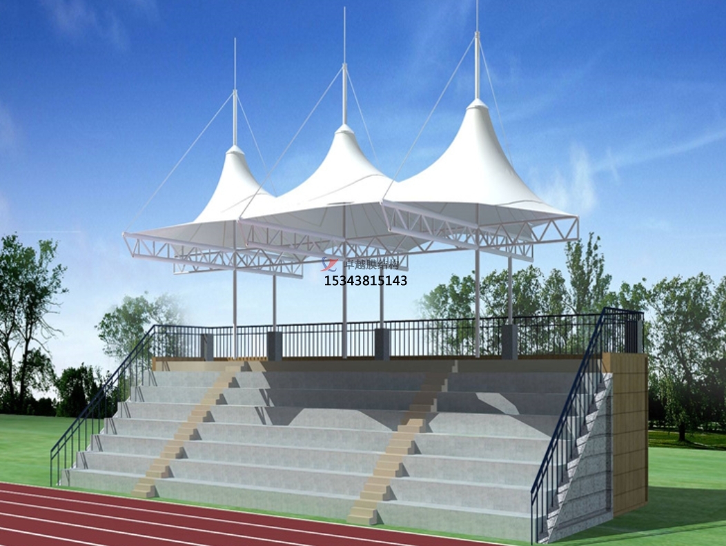 膜結(jié)構(gòu)看臺(tái)廣泛用于大型體育館以及體育看臺(tái)的工程之中。作為一種大跨結(jié)構(gòu),自輕重通過(guò)膜所具鋼結(jié)構(gòu)的拉力平衡,可實(shí)現(xiàn)超越距離懸挑。采用膜結(jié)構(gòu)頂棚,符合了體育場(chǎng)館的視野寬闊、無(wú)結(jié)構(gòu)遮擋的建筑要求,成為業(yè)主以及設(shè)計(jì)師首選結(jié)構(gòu)形式。在膜結(jié)構(gòu)體育看臺(tái)的類(lèi)型中,經(jīng)常會(huì)見(jiàn)到一種帽頂式的膜結(jié)構(gòu)體育看臺(tái),這種膜結(jié)構(gòu)體育看臺(tái)帽頂?shù)脑煨陀惺裁刺攸c(diǎn)呢?膜結(jié)構(gòu)體育看臺(tái)帽頂施工時(shí)怎么安裝呢?