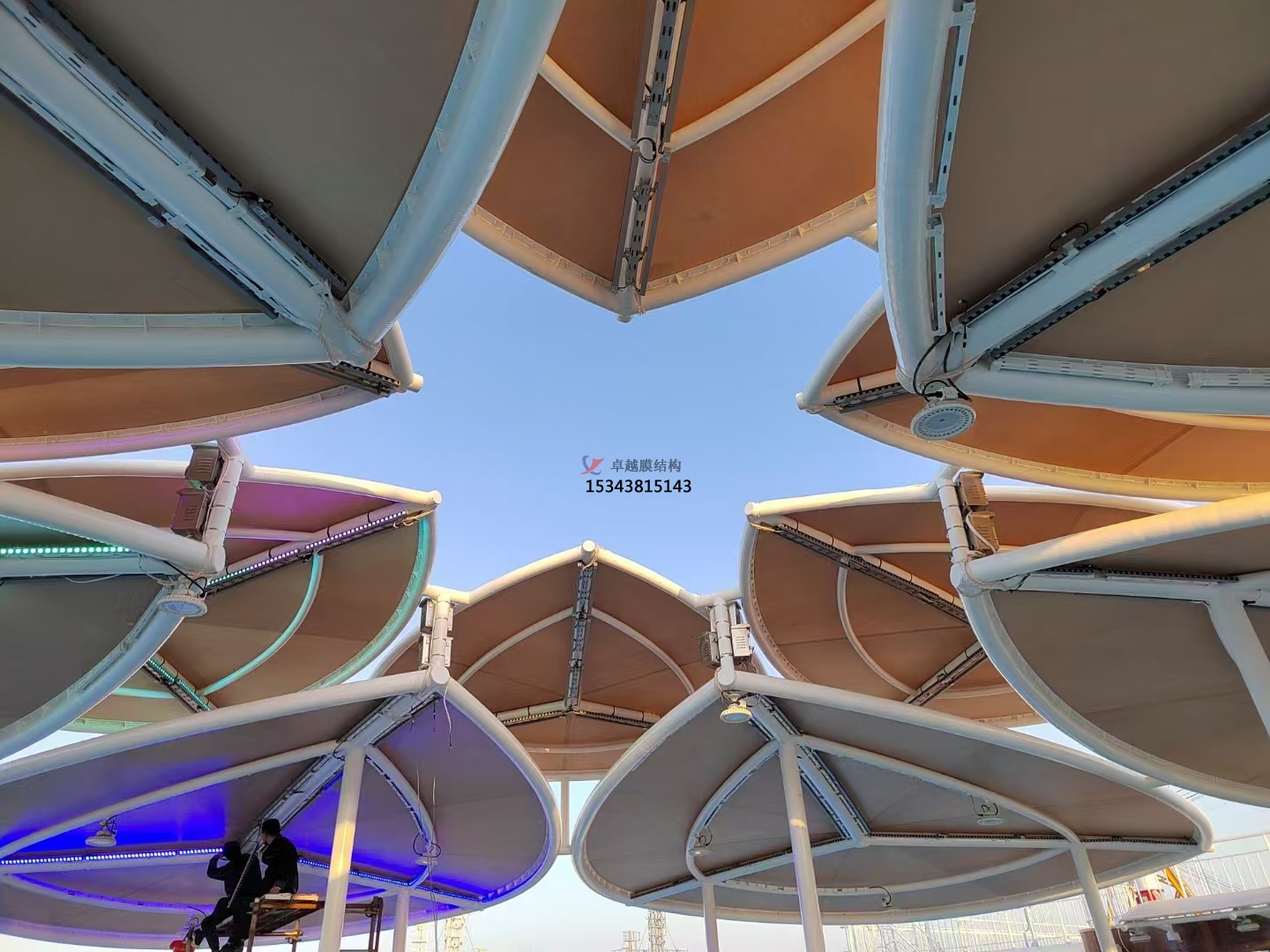 前沿技術(shù)正在重塑景觀膜結(jié)構(gòu):MIT實(shí)驗室研發(fā)的“光合膜材”嵌入微藻生物反應(yīng)器,每平方米日固碳量達(dá)450g;韓國首爾智慧公園的“神經(jīng)膜結(jié)構(gòu)”集成壓電纖維,通過行人踩踏發(fā)電滿足自身LED照明需求;慕尼黑工業(yè)大學(xué)開發(fā)的4D打印膜材可隨濕度變化自動開閉氣孔,實(shí)現(xiàn)自主呼吸調(diào)節(jié)。2025年即將建成的紐約哈德遜城市綠洲,其膜結(jié)構(gòu)屋面將集成25萬塊柔性光伏電池,年發(fā)電量達(dá)380萬kWh。