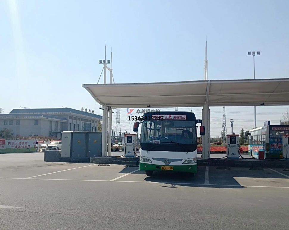 膜結構車棚在此發(fā)揮了重要作用。一般采用骨架式,先用鋼材制成骨架,然后安裝膜材,通過加強構建(鋼索、鋼柱)使其內(nèi)部產(chǎn)生一定的張力行程車棚形狀,能夠承受一定的風載荷跟雪載荷。使用張拉式的也比較多。也有使用充氣式的,這種比較高端維護成本比較高使用比較少。