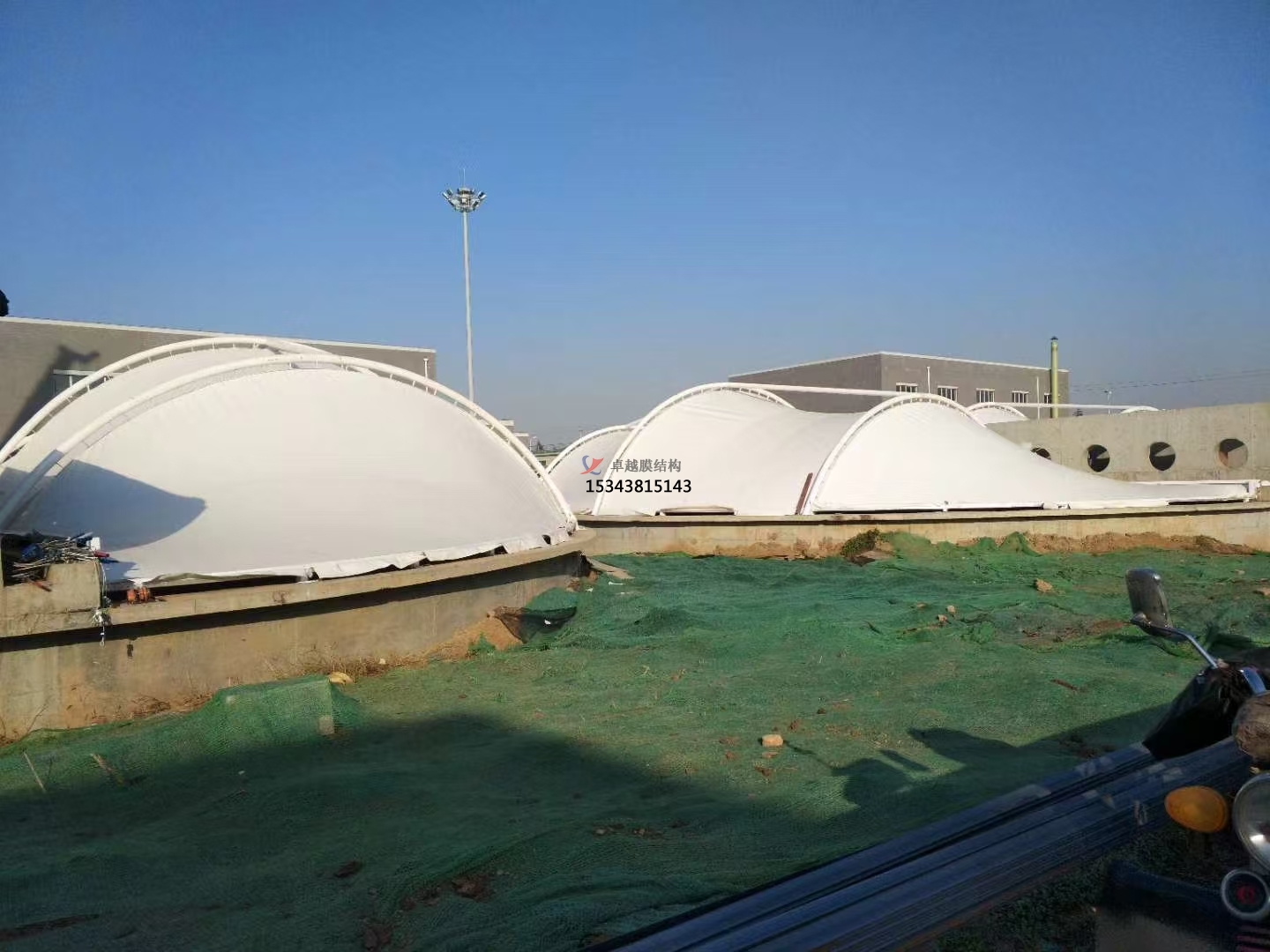 在露天的污水池上方用特殊的膜材料將其覆蓋并完全密封,使污水池中產(chǎn)生的廢臭氣體密閉在一個(gè)空間內(nèi),然后通過專門的除臭設(shè)備進(jìn)行收集和處理,從而達(dá)到減少惡臭氣體排放、改善周邊環(huán)境質(zhì)量、提高污水處理效率的目的。