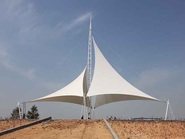 2、一個城市的中心區(qū)反映一個城市的地理風貌和民族風情,同時,也是一個城市文化發(fā)展程度的標志。而景觀設計要求其具有廣泛的可讀性、雅俗共賞,既有超凡脫俗的藝術價值,又能使大眾喜聞樂見與大眾息息相通。張拉膜以其輕盈飄逸的造型、柔美并帶有力量的曲線和大跨度和大空間的鮮明個性和標識性,應用于城市小品設計中。