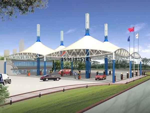 膜結(jié)構(gòu)作為一種建筑體系所具有的特性主要取決于其獨特的形態(tài)及膜材本身的性能。恰由于此,膜結(jié)構(gòu)加油站有著傳統(tǒng)建筑無法實現(xiàn)的設(shè)計美感。加油站收費站在其外形的可辨識性非常高,每一個加油站收費站都是當(dāng)?shù)氐囊粋€地標(biāo)性建筑物,非常有利于加油站收費站的運營及用戶的辨識。
