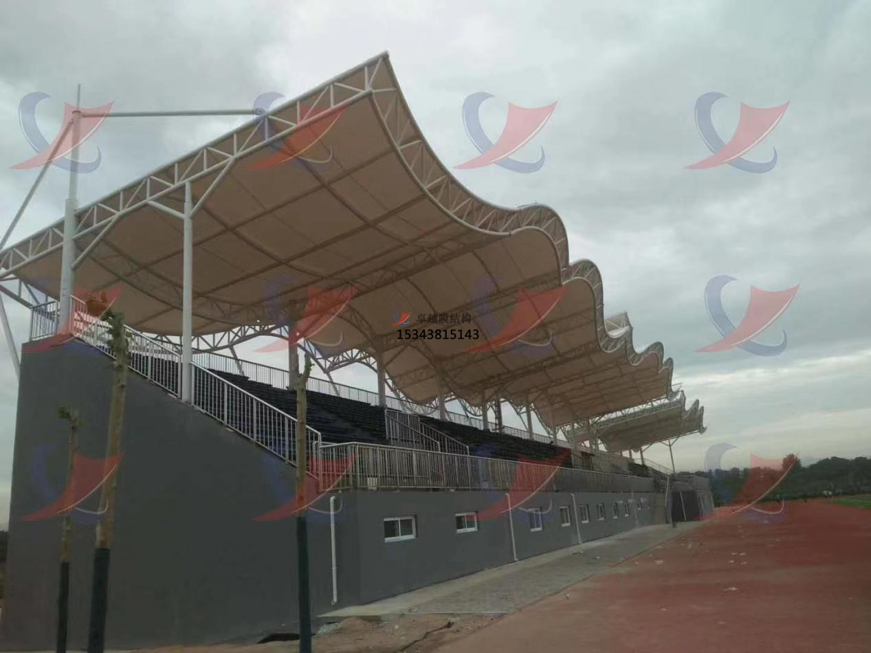 膜結構的柔性好,使得看臺可以根據(jù)不同的場地需求進行靈活調整,提高了觀眾的觀賽體驗。膜結構看臺案例在體育場館中學校等等中應用,還為觀眾提供舒適、美觀的觀賽環(huán)境,還能夠為體育賽事和演出增添獨特的景觀元素,提升場館的吸引力和競爭力。