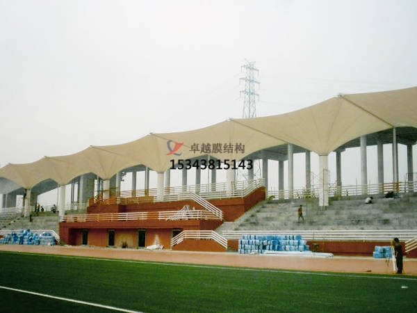 張力、拉力、摩擦力等。所以我們?cè)谑┕r(shí)必須注意圖紙上標(biāo)明的位置。張拉的形成是整個(gè)膜結(jié)構(gòu)看臺(tái)工程建設(shè)中的一個(gè)重要環(huán)節(jié)。建設(shè)項(xiàng)目能否取得成效,取決于張拉是否滿足設(shè)計(jì)要求。根據(jù)支撐邊界的不同,控制薄膜張力的方法也不同。當(dāng)支撐結(jié)構(gòu)為剛性邊界時(shí),預(yù)應(yīng)力的施加應(yīng)通過特殊結(jié)構(gòu)進(jìn)行。對(duì)于柔性邊界,可以通過調(diào)整支撐的位置來調(diào)整預(yù)應(yīng)力。根據(jù)本項(xiàng)目工廠膜材料試驗(yàn)獲得的膨脹率,計(jì)算膜切割尺寸。在施工過程中,只有薄膜張拉到位,并固定螺栓,以達(dá)到理論設(shè)計(jì)的張力值。
