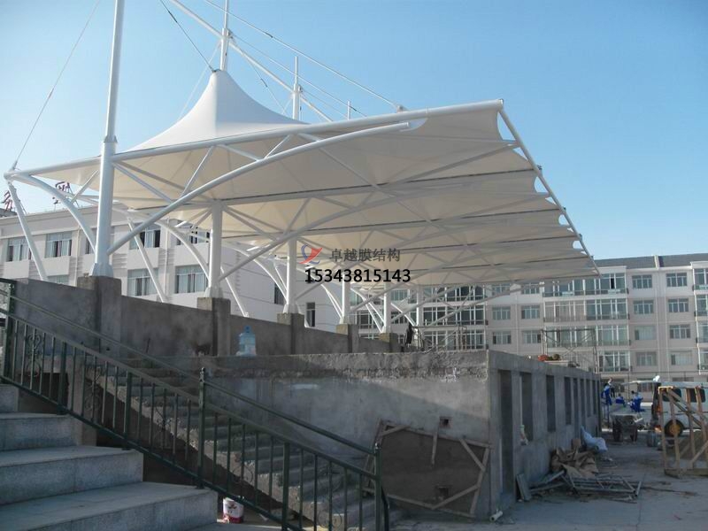 張拉膜看臺(tái)主要用于各類(lèi)地方體育場(chǎng)主席臺(tái)雨棚,各類(lèi)學(xué)校體育場(chǎng)看臺(tái)雨棚遮蓋,我公司是國(guó)內(nèi)較早從事大懸挑張拉膜結(jié)構(gòu)看臺(tái)設(shè)計(jì)施工的專(zhuān)業(yè)廠(chǎng)家,下面介紹一下我們?cè)谖錆h周邊縣市完工的一些張拉膜看臺(tái)設(shè)計(jì)施工案例,我公司先后在武漢周邊承接了武漢外國(guó)語(yǔ)學(xué)??磁_(tái)雨棚、武漢市建設(shè)學(xué)校張拉膜張拉膜看臺(tái)罩棚、武漢楓葉國(guó)際學(xué)校張拉膜看臺(tái)遮陽(yáng)棚張拉膜看臺(tái)遮陽(yáng)棚等設(shè)計(jì)施工項(xiàng)目,簡(jiǎn)介如下: