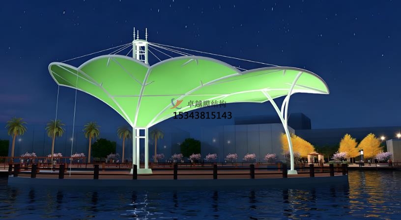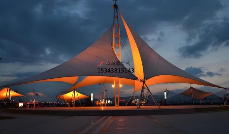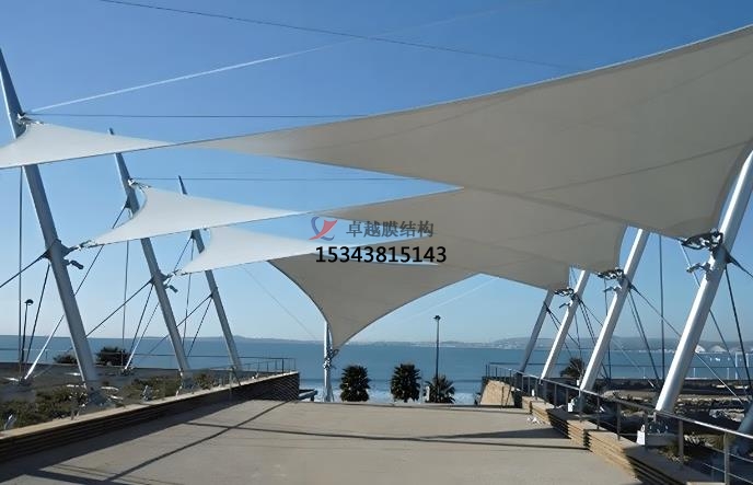 張拉膜景觀的應(yīng)用場景:商業(yè)空間,文化設(shè)施,運(yùn)動(dòng)場地,旅游景點(diǎn)。在商業(yè)空間中,如購物中心、商業(yè)廣場的入口、中庭等,可吸引顧客目光,提升商業(yè)氛圍。在文化設(shè)施中博物館圖書館等文化場所,可營造開放、溫馨的室內(nèi)環(huán)境,增添文化藝術(shù)氣息。在運(yùn)動(dòng)場地中足球場、籃球場等運(yùn)動(dòng)場館的屋頂或看臺(tái),實(shí)現(xiàn)大跨度覆蓋,為觀眾和運(yùn)動(dòng)員提供良好的空間環(huán)境。在旅游景點(diǎn)景區(qū)大門、游客服務(wù)中心、觀景臺(tái)等,可彰顯地域特色,為游客提供遮陽避雨的空間。張拉膜景觀材料可在工廠預(yù)制,現(xiàn)場安裝快速高效,大大縮短施工周期。這種結(jié)構(gòu)通常采用預(yù)應(yīng)力拉索體系,利用邊鎖的拉力和膜材的形狀構(gòu)成造型,盡可能減少結(jié)構(gòu)體型對(duì)膜材視覺的影響常用彩色膜材以體現(xiàn)其千變?nèi)f化的浪漫情懷。其靈活的設(shè)計(jì)和組合方式,使其能夠適應(yīng)各種復(fù)雜的地形和環(huán)境。張拉膜景觀在設(shè)計(jì)中,會(huì)充分結(jié)合當(dāng)?shù)氐臍夂?、景觀和文化背景,使其不僅具有功能性,還能成為地域文化的象征,提升旅游地區(qū)的品質(zhì)形象。此外,張拉膜材料本身具有顯色性,在夜間彩燈的映射下能形成絢麗繽紛的景觀效果,為人們帶來時(shí)尚、輕松的休閑感受。