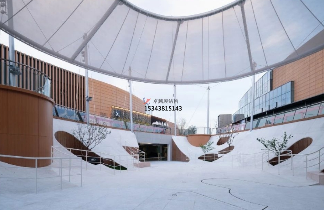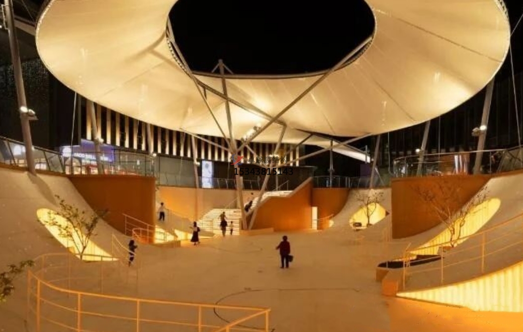 但不管怎么有格調的下沉式商業(yè)。廣場,它也是一個半露天的公共空間,如果缺乏遮陽避雨設施,無法提供更加舒適的休閑環(huán)境,因此,在下沉廣場上方增設頂蓋是非常必要的,而且一個兼具美觀、時尚、實用的頂蓋也是建筑的加分項。