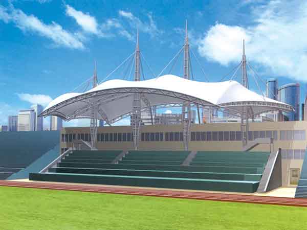 張拉膜看臺主要用于各類地方體育場主席臺雨棚,各類學校體育場看臺雨棚遮蓋,我公司是國內(nèi)較早從事大懸挑張拉膜結構看臺設計施工的專業(yè)廠家,下面介紹一下我們在寧波市周邊縣市完工的一些張拉膜看臺設計施工案例,我公司先后在寧波周邊承接了寧波職業(yè)技術學院張拉膜看臺雨棚、寧波城市職業(yè)技術學院張拉膜看臺罩棚、浙江醫(yī)藥高等??茖W校張拉膜看臺遮陽棚等設計施工項目,簡介如下: