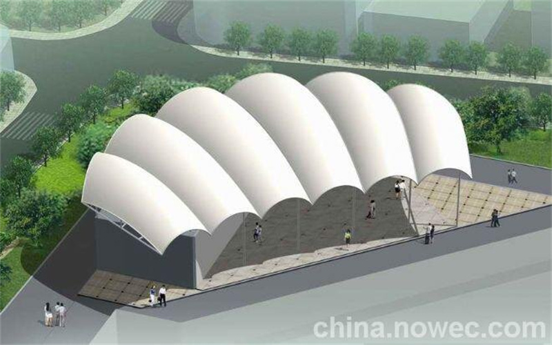 膜結(jié)構(gòu)建筑消防應(yīng)以耐火和安全綜合特性進(jìn)行設(shè)計(jì),而不應(yīng)按照傳統(tǒng)抗火耐火進(jìn)行設(shè)計(jì)。膜結(jié)構(gòu)材料面的選擇應(yīng)滿足室內(nèi)火荷載和使用功能的要求以及能夠抵抗外部火源危害的要求。必要時(shí)可在膜結(jié)構(gòu)面內(nèi)側(cè)附加一層不燃膜以在膜結(jié)構(gòu)室內(nèi)起火時(shí)保護(hù)外側(cè)受力膜,從而滿足防火要求,同時(shí)也可提高膜結(jié)構(gòu)室內(nèi)保溫。
