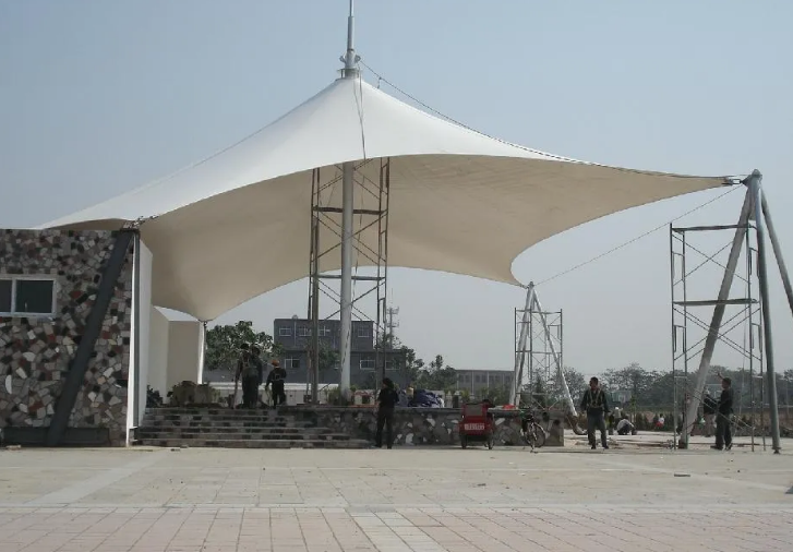 其次,膜結(jié)構(gòu)車棚的好處在于它維護(hù)保養(yǎng)起來非常的方便和簡單,也就是說它有很好的自潔性,上面落的灰塵,下雨的時(shí)候一沖,自己就干凈了,根本不需要專人經(jīng)常擦洗。這樣可以節(jié)約很大的人力成本。