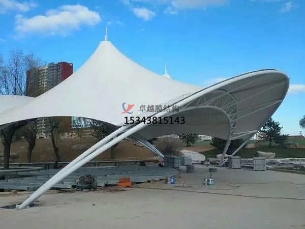 5.抵御天氣的影響:舞臺膜屋面的一個重要作用就是抵御各種天氣變化(如日曬、雨淋、風(fēng)雪等)對其內(nèi)部空間的影響,保持建筑物內(nèi)部的舒適性。選擇膜面的形態(tài)和材料時要考慮到所有可能的天氣狀況,并盡可能利用建筑本身等被動方法來減少能量的消耗。