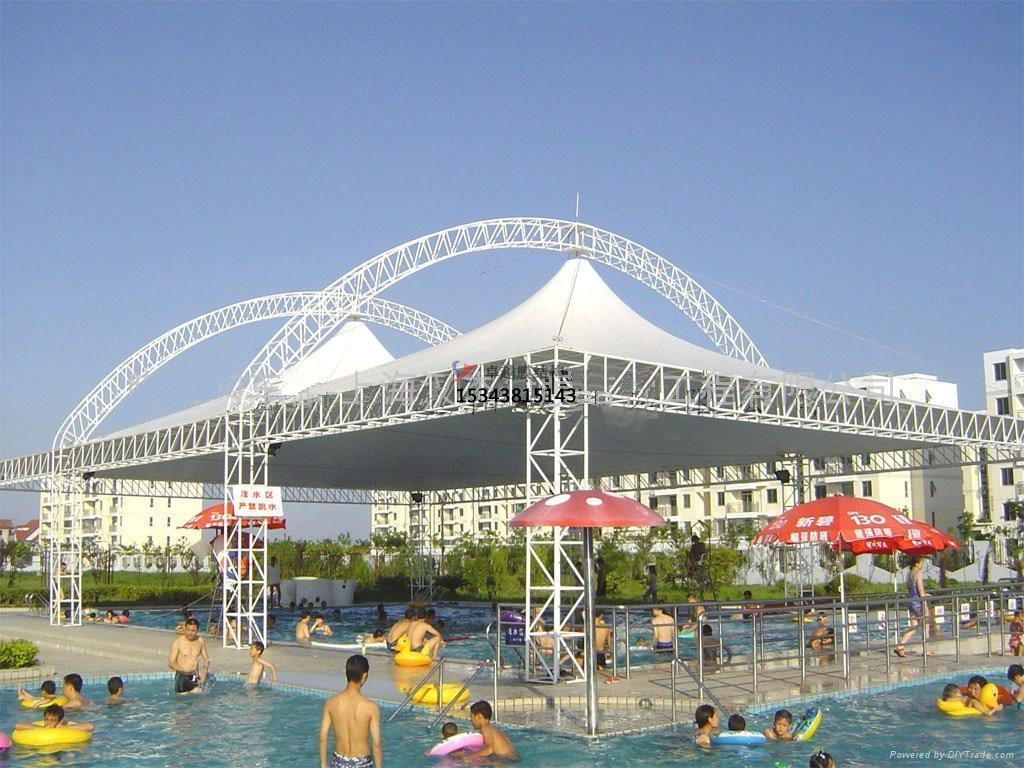 游泳館膜結(jié)構(gòu)是一種適用于大型游泳館建造的先進(jìn)技術(shù),通?;阡摻Y(jié)構(gòu)或光鋼結(jié)構(gòu)框架等穩(wěn)定型構(gòu)件,采用高強度、高韌性的PVDF膜或PTFE膜作來覆蓋整個館內(nèi)空間,并形成周邊固定結(jié)構(gòu)的耐候和保護(hù)部件所構(gòu)成的一種膜形結(jié)構(gòu)體系。