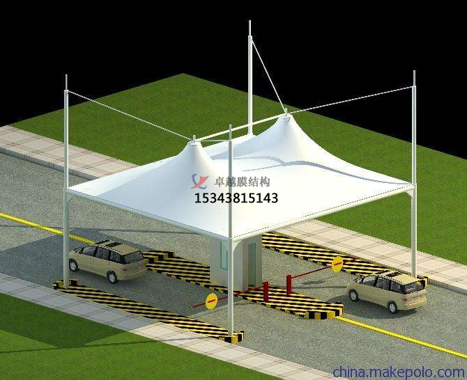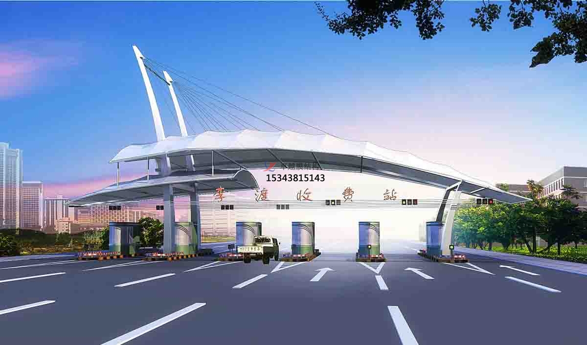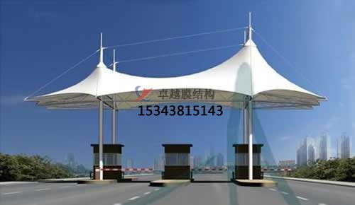收費站膜結構的弧形線條是在體現(xiàn)膜材料得柔性性能的同時是充分得展現(xiàn)了膜結構建筑的優(yōu)雅內涵,其柔美特點與高速路的剛性與速度特點形成了鮮明的對比。同時,收費站膜結構外形也延續(xù)了中國建筑中對稱的傳統(tǒng)特點,在視覺上也滿足了大眾的審美觀。