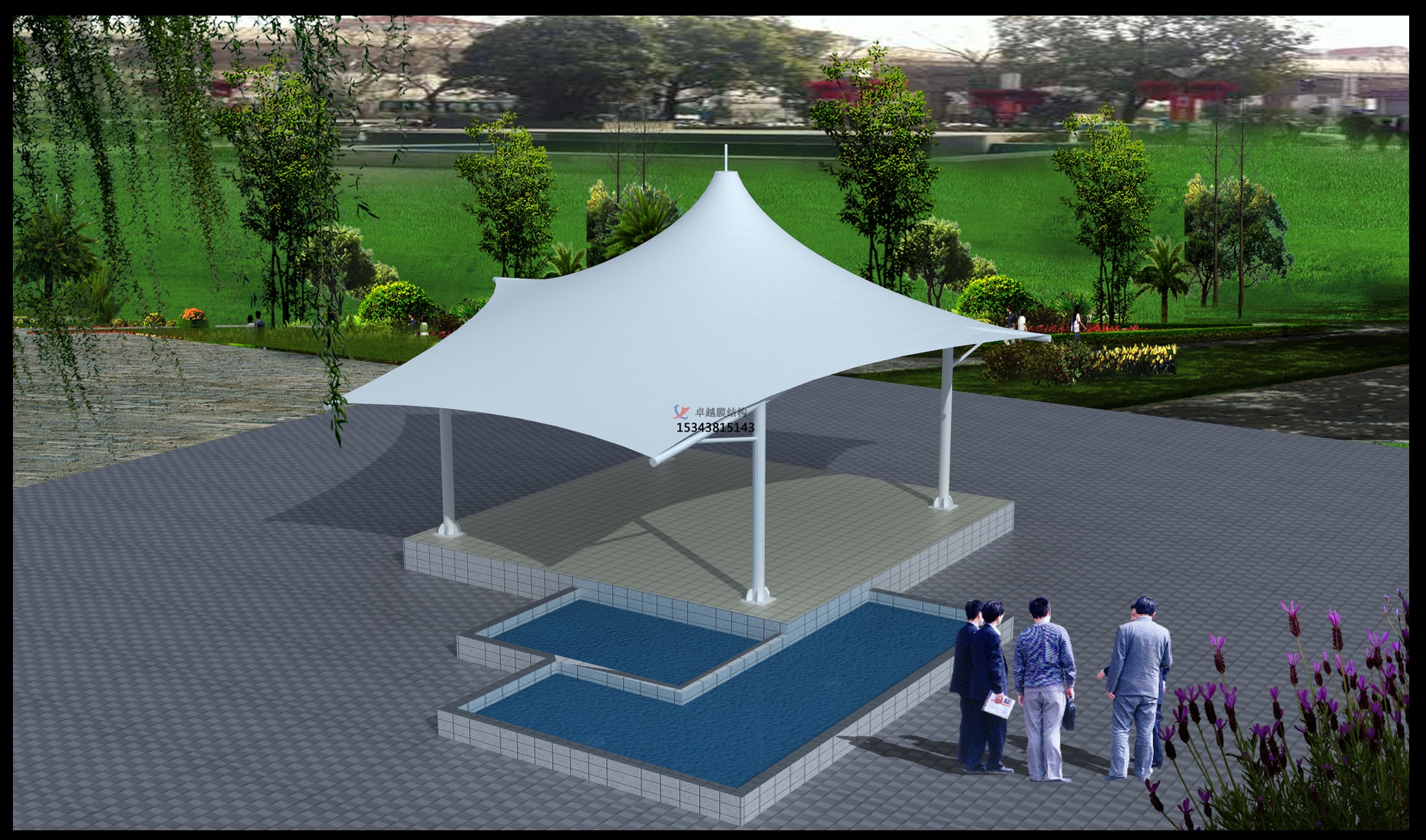由于膜結(jié)構(gòu)景觀棚造型結(jié)構(gòu)的自身特性,其可以滿足從簡單遮陽結(jié)構(gòu)到功能復(fù)雜的大型建筑等許多不同的建筑功能要求,并形態(tài)極具表現(xiàn)力且對于有些功能要求只有它才是更為適合的。具有特定功能的建筑都可通過立意得以表達,膜結(jié)構(gòu)景觀棚獨特造型體現(xiàn)了建筑自身的自然美感。