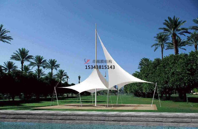 張拉膜景觀建筑的設(shè)計應(yīng)根據(jù)建筑的使用特點(diǎn)和總體布局要求,合理確定排水坡度和位置,保證膜面排水通暢;在積雪較重的地區(qū),應(yīng)采用較大的薄膜坡度和必要的防雪措施。