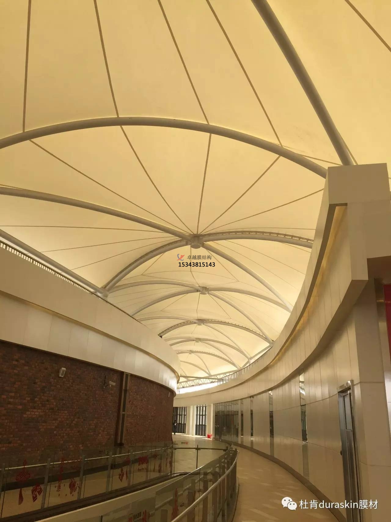建筑入口使城市公共空間與建筑空間相鄰的界面,成為城市空間的組成部分。它是人們視覺(jué)更先接觸的部分,因此,除了功能以外,還應(yīng)有很強(qiáng)的標(biāo)識(shí)性,并能體現(xiàn)建筑的個(gè)性,是建筑環(huán)境和城市景觀的重要組成部分。由于膜結(jié)構(gòu)自然的曲線美是其他結(jié)構(gòu)類型無(wú)法比擬的,故成為近來(lái)建筑入口及屋頂經(jīng)常采用的形式。