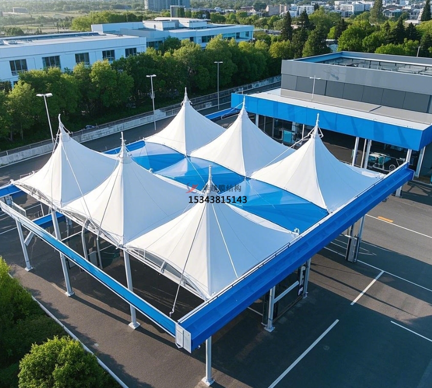 高速公路服務(wù)區(qū)加油站:高速公路服務(wù)區(qū)加油站車流量大,對設(shè)施的耐用性和快速施工要求較高。膜結(jié)構(gòu)頂棚憑借其長使用壽命、便捷施工等優(yōu)勢,能在短時間內(nèi)完成建設(shè),滿足服務(wù)區(qū)快速投入使用的需求。同時,其美觀的造型也能為長途奔波的司乘人員帶來良好的視覺感受,提升服務(wù)區(qū)的整體形象。