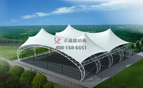 結(jié)構(gòu)連接配件:所有膜結(jié)構(gòu)配件全部采用鍍鋅材料,所用螺栓全部鍍鋅高強(qiáng)螺絲,所有連接部件全都用鋁型材做壓板。所有帽頂封膜部分全部采用上海陶氏生產(chǎn)高強(qiáng)度耐候膠,嚴(yán)苛的選材鑄就一流品質(zhì)。