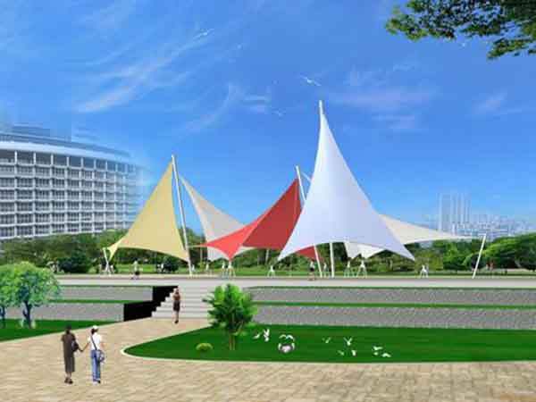 2、景觀膜結(jié)構(gòu)是目前發(fā)展很快的一種新型空間結(jié)構(gòu),是一種效率極高的張力集成體系,可以充分發(fā)揮鋼索的強(qiáng)度與張拉整體結(jié)構(gòu)的空間作用。它通過鋼骨架、鋼索與膜材共同受力形式穩(wěn)定曲面來覆蓋建筑空間,具有高度的形體可塑性和結(jié)構(gòu)靈活性,即通過對(duì)膜材內(nèi)部施加一定的預(yù)張力,使其具備了抵抗外荷載能力,從而充當(dāng)結(jié)構(gòu)材料的一種結(jié)構(gòu)體系。我公司先后在池州地區(qū)承接了池州百荷公園景觀、皋城中心廣場(chǎng)景觀、池州萬達(dá)廣場(chǎng)景觀小品的設(shè)計(jì)施工,簡(jiǎn)介如下: