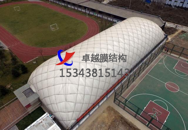 充氣結(jié)構(gòu)主要有氣承式和氣囊式兩種結(jié)構(gòu)形式。①氣承式結(jié)構(gòu)是直接用單層薄膜作為屋面和外墻,將 充氣結(jié)構(gòu)周邊錨固在圈梁或地梁上,充氣后形成圓筒狀、球狀或其他形狀的建筑物(圖。室內(nèi)氣壓為室外氣壓的1.001~1.003倍。人和物通過氣鎖出入口進出。為減小薄膜拉力、增大結(jié)構(gòu)跨度氣承式結(jié)構(gòu)薄膜上面可設(shè)置鋼索網(wǎng)。氣囊式結(jié)構(gòu)是將空氣充入由薄膜制成的氣囊,形成柱、梁、拱、板、殼等基本構(gòu)件,再將這些構(gòu)件連接組合而成的建筑物。氣囊中的氣壓為室外氣壓的2~7倍,故是一種高壓體系。