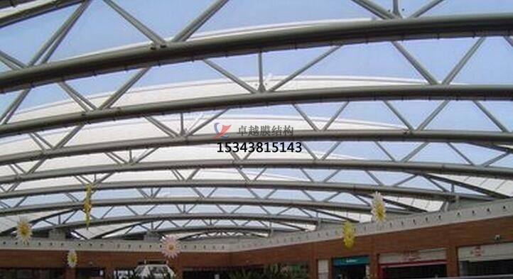 膜結(jié)構(gòu)車棚一改傳統(tǒng)建筑材料而使用膜材,其重量只是傳統(tǒng)建筑的三分之一,而且膜結(jié)構(gòu)車棚可以從根本上克服傳統(tǒng)大跨度建筑上所遇到的困難,可創(chuàng)造巨大的無遮擋的可視空間。膜結(jié)構(gòu)車棚特點是強(qiáng)度高、耐久性好、防火難燃、透光性好、自潔性好,跨度可以超過兩百米,不受紫外線影響,使用壽命長,一般15-30年。