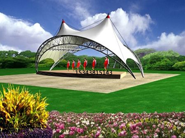 膜結(jié)構(gòu)舞臺工程能供給五顏六色的用處,并與園林景觀、公園景觀溶為一體,發(fā)明出讓人們盡情享用的快樂空間,充分展示了景觀膜結(jié)構(gòu)構(gòu)件明晰受力的藝術(shù)之美,它美妙的整合了周圍的環(huán)境,帶給人們一種顯貴典雅、浪漫溫馨之感。其他因為膜材料本身特有的顯色性,在夜間彩燈的映射下能構(gòu)成美麗的景觀。 不只給人們供給遮陽避雨的空間,也因為這種生動活潑的造型能給人們帶來時尚、精約的休閑感觸,所以廣受群眾歡迎。