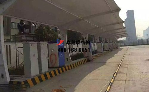 膜結(jié)構(gòu)充電站樁車棚設(shè)計、施工案例,我們在信陽承接了信陽市公共交通總公司、信陽市德正新能源有限公司、信陽市汽車站