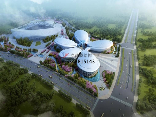 具有特定功能的建筑都可通過立意得以表達,張拉膜結構的獨特外形體現了建筑自身的自然美感。這些建筑形態(tài)本身和與其相協調的傳統建筑一起構成了令人興致盎然的地面標志性建筑。更好的膜結構設計是結構與外形的有機融合,使其顯得了類拔萃,同時與自然環(huán)境、歷史及現代的城市景觀有機結合。輕型結構可以看成是大型的雕塑作品,可為其周邊空間增添活力,成為周圍環(huán)境的補充和焦點。