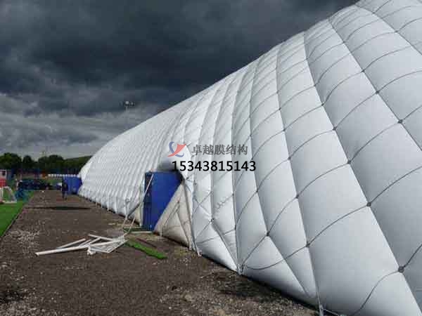 1、我們的氣膜建筑跨度可完結(jié)180米,內(nèi)部無梁無柱