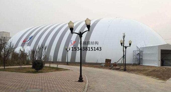 充氣膜體育館是用特殊的建筑膜材做外殼,配備一套智能化的機電設(shè)備在氣膜建筑內(nèi)部提供空氣的正壓,把建筑主體支撐起來的一種建筑結(jié)構(gòu)系統(tǒng)。