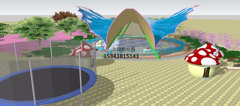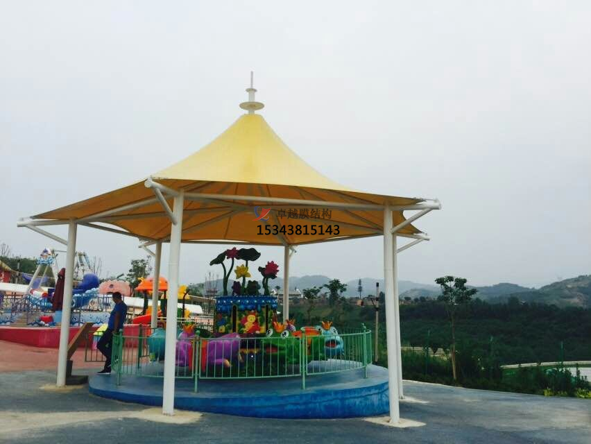 3:簡易拆卸,移動和可以更換性能,游樂園的建筑和其他項目建筑的很大不同是,游樂園需要定期或者不定期做一些改造或者調(diào)整,這樣游客才會重復來玩。膜結(jié)構(gòu)恰好能滿足這一點,比如,同樣是一個休息亭,換個顏色,或者換個造型,只需要增加或者減少局部的鋼結(jié)構(gòu)桿件,換一塊膜就可以搞定,傳統(tǒng)的結(jié)構(gòu)是沒辦法實現(xiàn)的。