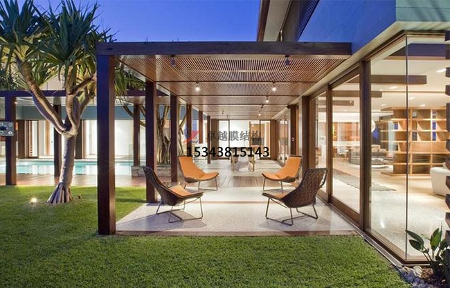 6)應(yīng)用鋼結(jié)構(gòu)是一種獨(dú)立的結(jié)構(gòu)形式,所以它可以和其他材料相組合,作用在園林景觀當(dāng)中也就提供了更廣泛的形態(tài)空間。例如在剪紙的景柱上或者是鋼板景墻上,都具有兼容性,一方面可以美化擋墻,另一方面也可以節(jié)約資源。此外,當(dāng)鋼結(jié)構(gòu)和覆蓋的膜結(jié)構(gòu)相結(jié)合時,這也促使了景觀在形態(tài)上達(dá)到力與美的結(jié)合。在目前的城市園林景觀設(shè)計(jì)當(dāng)中,我們所看見的都是鋼結(jié)構(gòu)與膜結(jié)構(gòu)相結(jié)合的設(shè)計(jì),所以它的結(jié)構(gòu)較為輕巧、造型非常優(yōu)美,方便經(jīng)濟(jì),它可以更好的突出鋼結(jié)構(gòu)的特點(diǎn)。