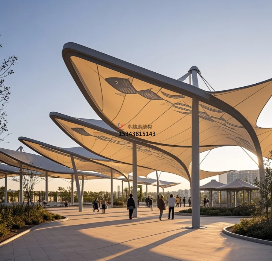 在現(xiàn)代景觀設(shè)計(jì)的多元舞臺上,景觀膜結(jié)構(gòu)宛如一顆璀璨新星,以其獨(dú)特的魅力與卓越的性能,重塑著城市與自然的空間形態(tài),為人們帶來耳目一新的視覺體驗(yàn)與實(shí)用功能。它打破傳統(tǒng)建筑結(jié)構(gòu)的束縛,將藝術(shù)美學(xué)與工程技術(shù)完美融合,成為現(xiàn)代景觀中一道靈動且富有生命力的風(fēng)景線。