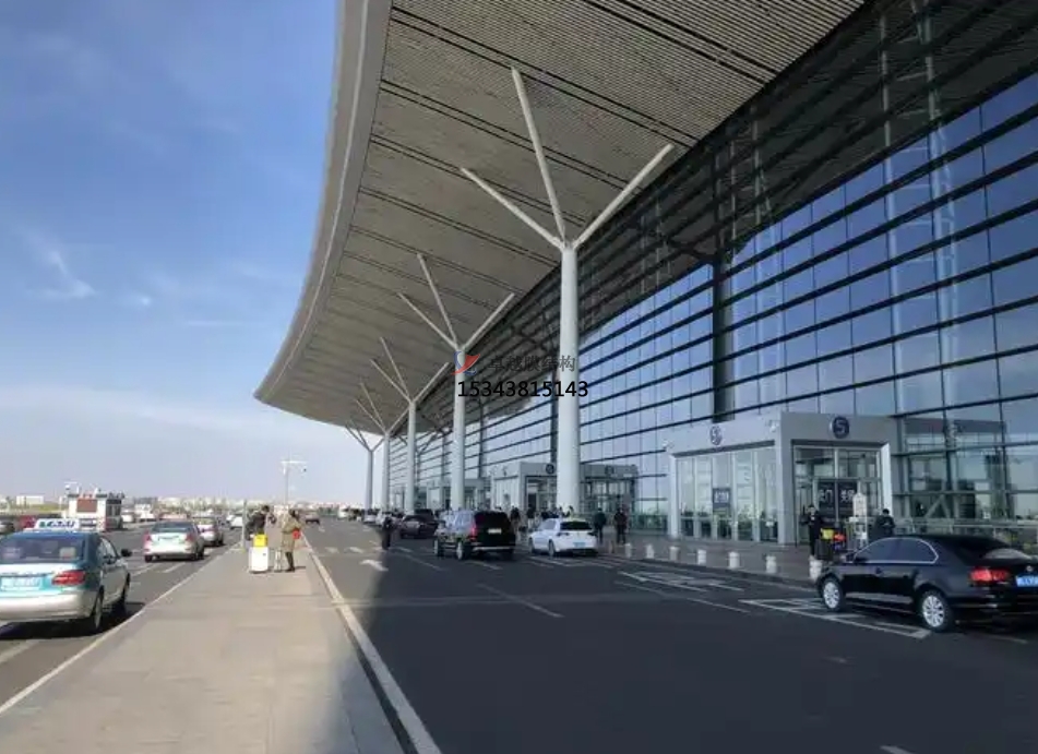 以鋼索、梭形柱為支撐體系,結(jié)合張拉式或脊谷式設(shè)計,實(shí)現(xiàn)無柱大空間覆蓋(如岳陽三荷機(jī)場單跨達(dá)86米)。