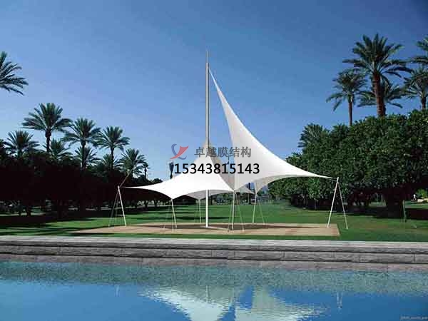2、景觀膜結(jié)構(gòu)是建筑結(jié)構(gòu)中一個(gè)的更新發(fā)展起來(lái)的一種建筑的構(gòu)件。它是以性能的是優(yōu)良的織物是為材料的,或是向膜內(nèi)的是充氣, 由空氣的壓力是支撐的膜面,或是利用的是柔性鋼索的是將膜面的繃緊,從而是形成具有一定的剛度的、是能夠覆蓋大跨度的空間的建筑結(jié)構(gòu)的體系。