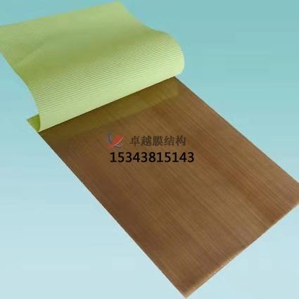 拿到一款PTFE膜材,很好的先要看它的色澤。如果色澤偏白,說明涂層的填充料偏多;如果色澤不均勻,存在明顯色差,說明涂料沒攪拌均勻,是生產(chǎn)工藝不成熟的表現(xiàn)。好的PTFE膜材偏黃褐色,整體色澤比較均勻,在陽光下暴曬會越來越白。