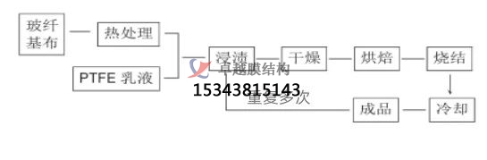制作膜材的過程中,玻纖布需要進行多次浸漬,而且要適當控制每次浸漬的樹脂量,過少會達不到產品的性能要求,過多則在燒結后容易出現(xiàn)龜裂現(xiàn)象。